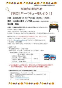 【イベント情報】交流会のお知らせ『秋だ!バーベキューをしよう!』【10/17】