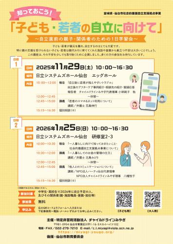 【1/25開催!】知っておこう!「子ども・若者の自立に向けて」~自立直前の親子・関係者のための1日学習会~【イベント情報】